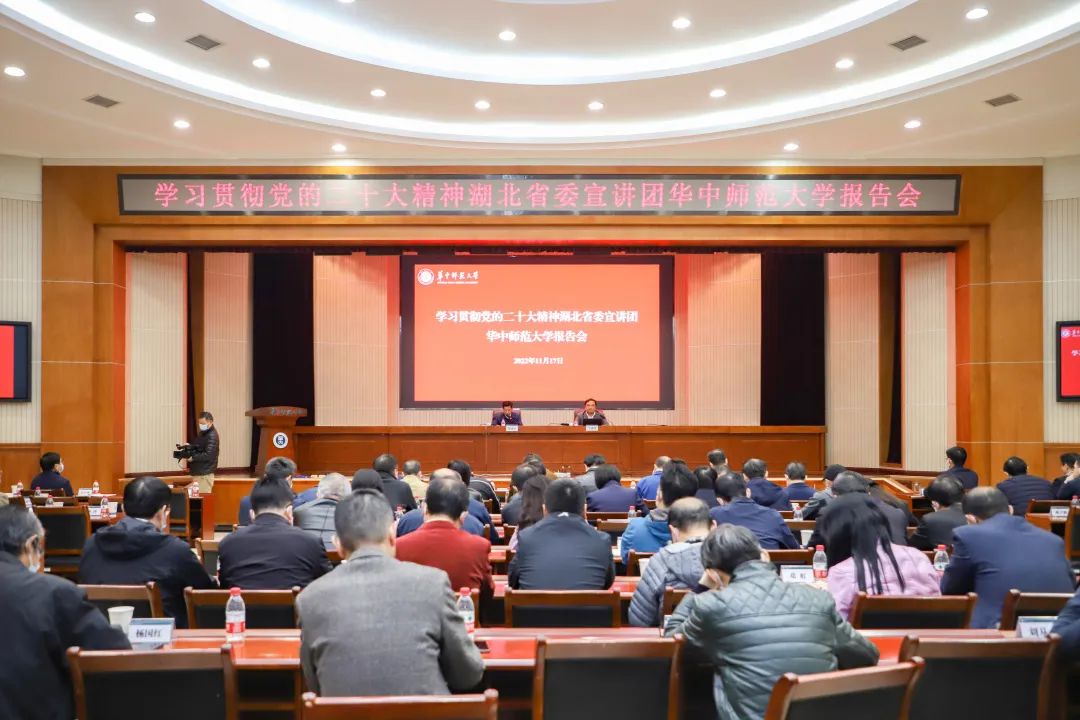 华大在线讯(记者 毛军刚)11月17日,学习贯彻党的二十大精神湖北省委宣讲团开云新人注册88元_开云(中国)报告会暨开云新人注册88元_开云(中国)党委理论学习中心组(扩大)2022年第11次学习在科学会堂一楼报告厅举行。省委宣讲团成员、政治与国际关系学院教授王建国以《以中国式现代化推进中华民族伟大复兴》为题作报告。全体校领导、中层正职干部、“理响开云新人注册88元_开云(中国)”理论宣讲团成员参会。校党委书记赵凌云主持会议。