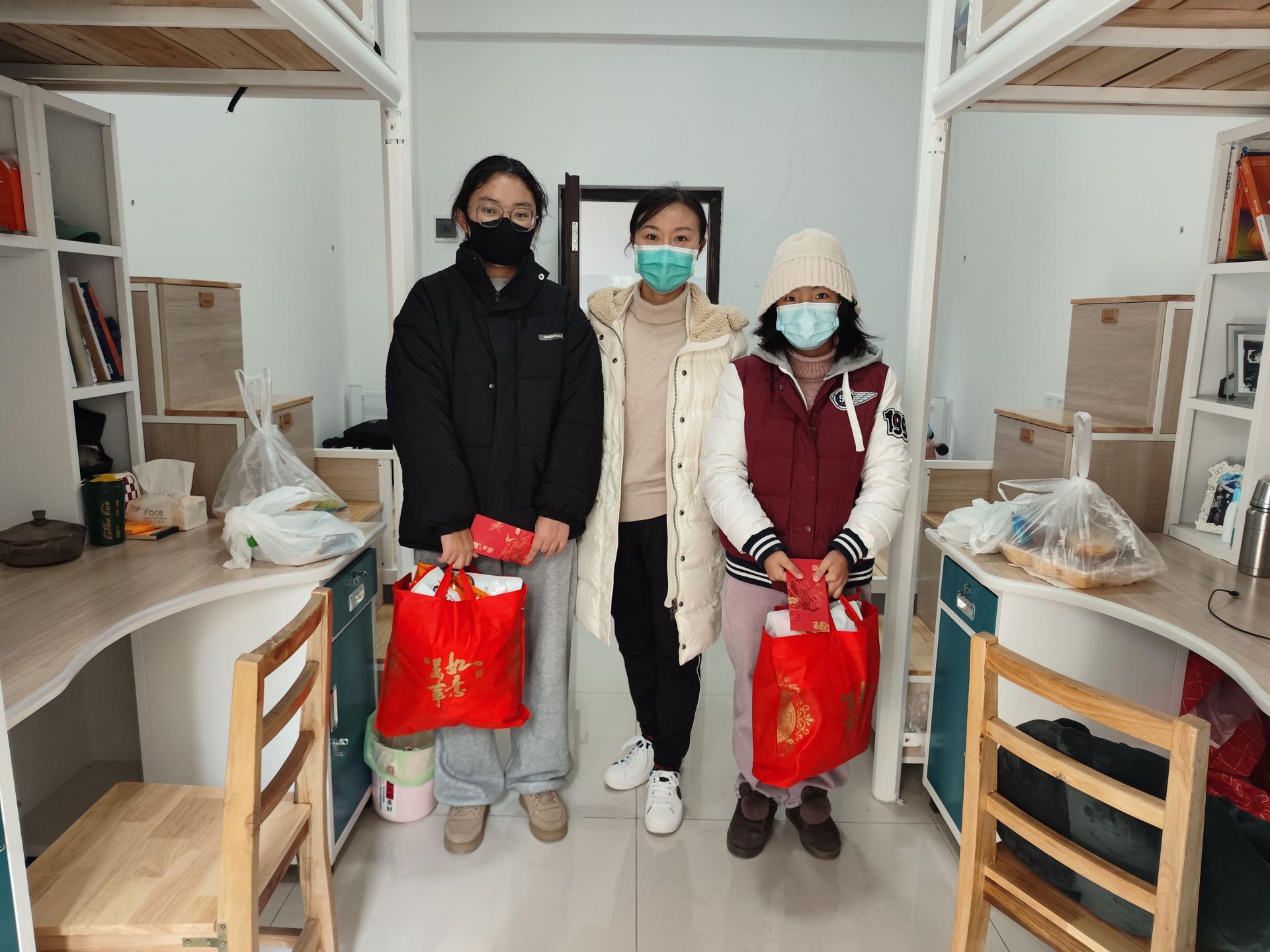 今年开云新人注册88元_开云(中国)一共有140余名本科生、研究生计划留校过年。学校为每名留校学生准备了一份新年大礼包,里面包含新年红包、零食大礼包、防疫物资等,并给每人送了一本学习书籍。19日中午,学校组织各单位的教职工将新年大礼包、书籍以及一份团年饭一对一送到留校学生手中,给每位同学带来了学校的新春祝福。