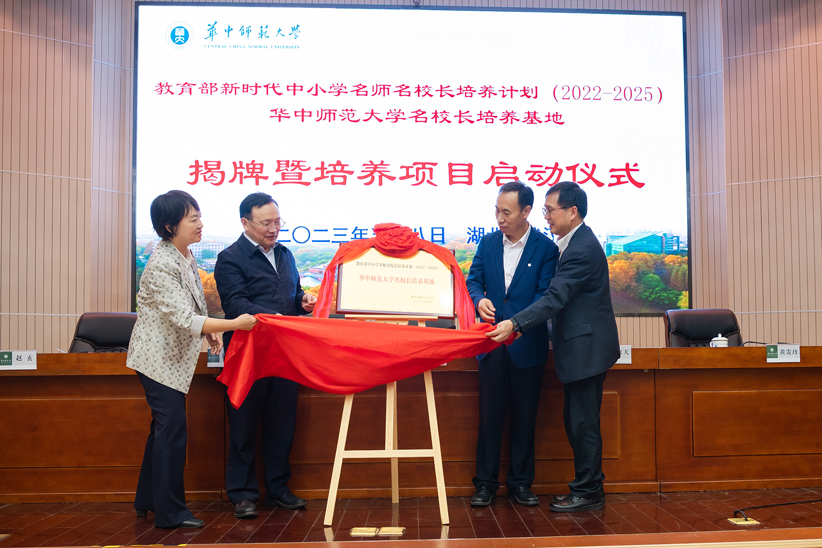 华大在线讯(记者 郝日虹)5月8日,教育部新时代中小学名师名校长培养计划(2022—2025)开云新人注册88元_开云(中国)名校长培养基地揭牌暨培养项目启动仪式在科学会堂一楼报告厅举行。校党委书记夏立新、国家教育行政学院副院长于京天、教育部全国中小学教师校长培训专家工作组秘书处秘书长黄贵珍、中小学校长和幼儿园园长国家级培训项目管理办公室副主任赵玄出席。启动仪式由副校长任友洲主持。