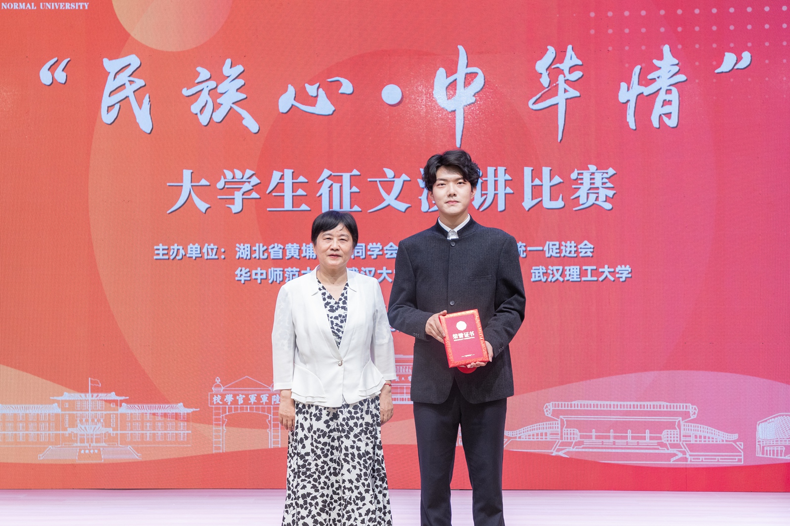 华大在线讯(记者 黄妍妍 实习记者 于继泓)5月26日,“民族心·中华情”大学生征文演讲比赛决赛在老年活动中心五楼演播厅举行。湖北省政协副主席、湖北省黄埔同学会会长、湖北中国和平统一促进会副会长王红玲,湖北省委统战部副部长江浩,湖北省黄埔同学会专职秘书长秦辉、校党委书记夏立新,校党委副书记查道林等出席。