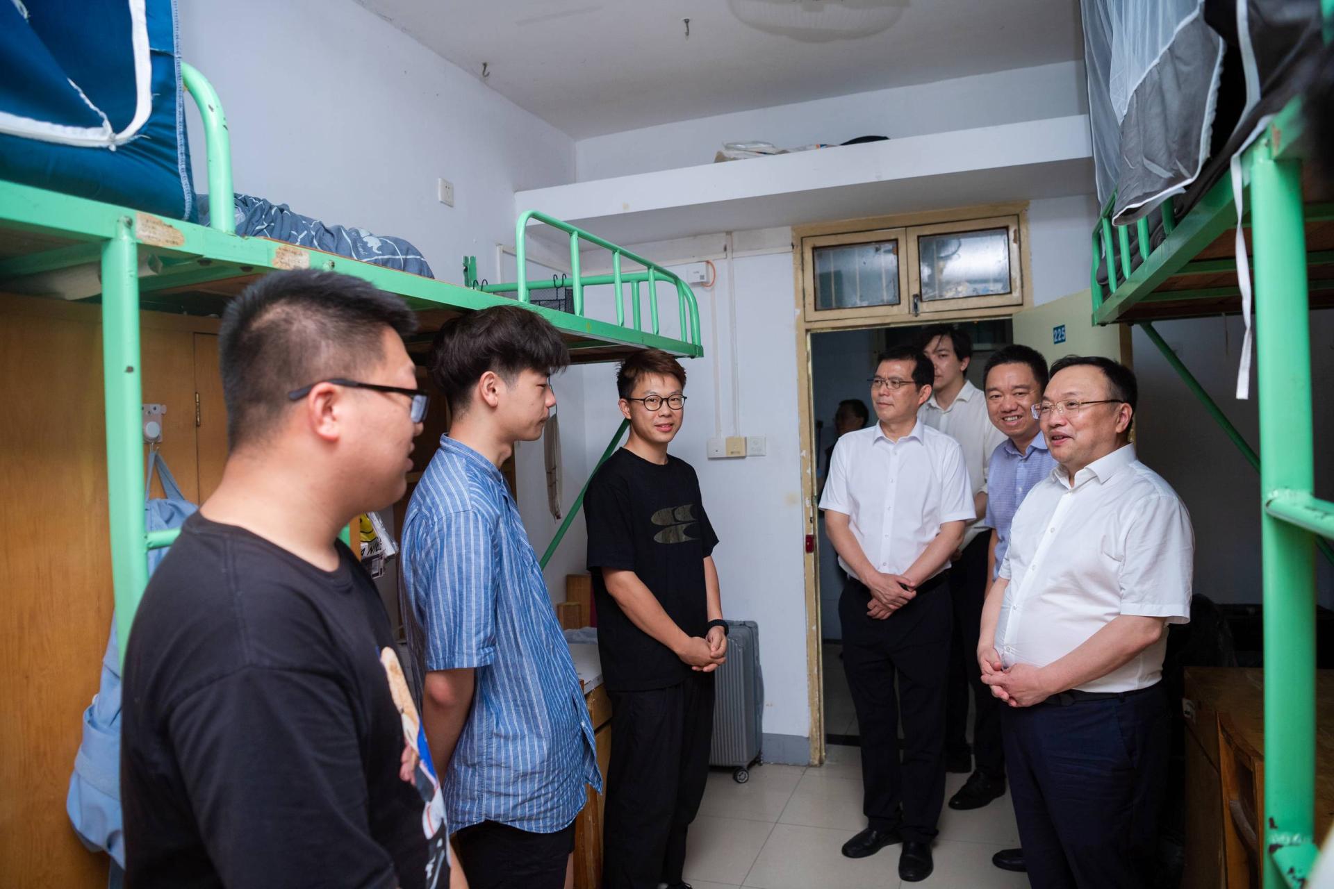 华大在线讯(记者 华轩 实习记者 李辉煌 崔博然)近日,校党委书记夏立新、校长彭双阶、校党委副书记陈迪明先后走访毕业生寝室,了解毕业生离校情况,为即将离校的毕业生送上美好祝福。学校办公室、党委宣传部、党委学生工作部、后勤保障部、保卫处主要负责人参加。