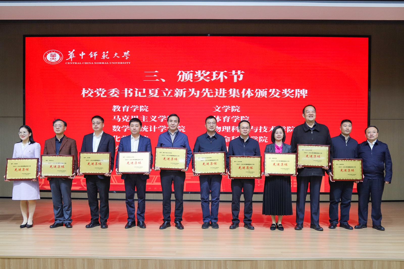会上,彭双阶宣读表彰2021—2023年度离退休工作先进集体和先进个人的决定。夏立新和彭双阶分别为先进集体和先进个人颁发奖牌及获奖证书。