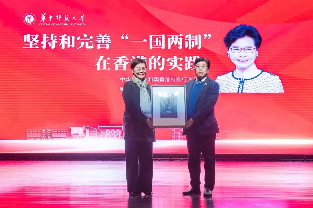 林郑月娥女士作题为《坚持和完善“一国两制”在香港的实践》的主题演讲,并与现场师生交流