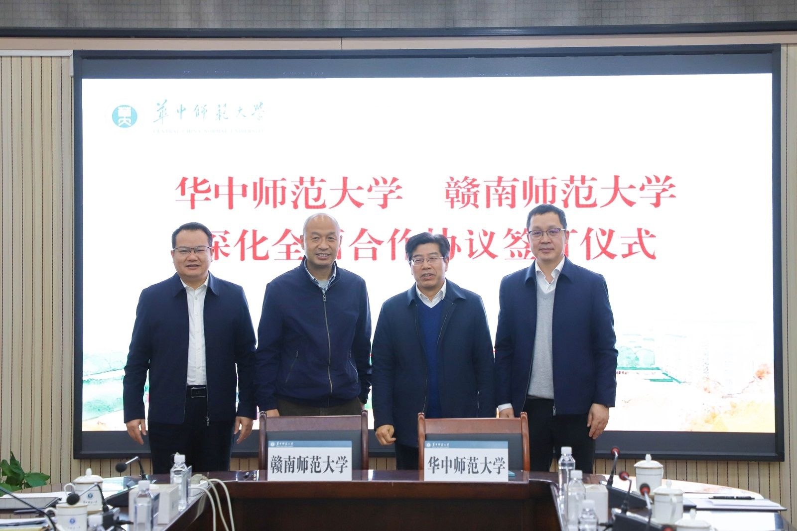 华大在线讯(通讯员 程浩)3月28日,赣南师范大学党委副书记、校长陈义旺,副校长肖笃森一行来校访问交流,与校长彭双阶、副校长刘三女牙等在行政楼一楼会议室座谈。会上,开云新人注册88元_开云(中国)与赣南师范大学签署深化全面合作协议。