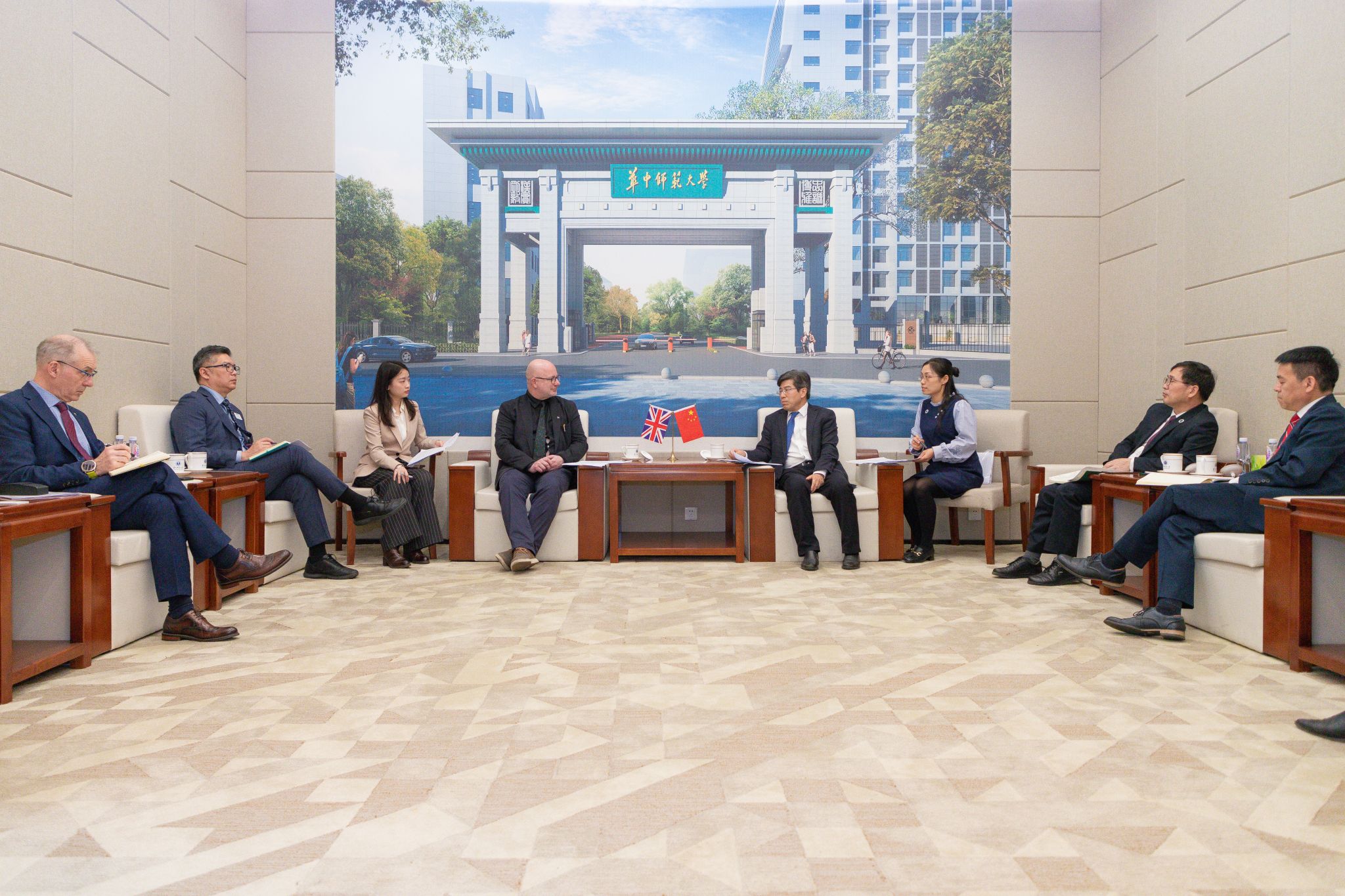 华大在线讯(通讯员 张芷珣 刘方)4月16日至18日,英国纽卡斯尔大学全球事务副校长克里斯·怀特海德(Chris Whitehead)一行访问开云新人注册88元_开云(中国),商谈开展战略合作事宜,校长彭双阶、副校长任友洲会见代表团。