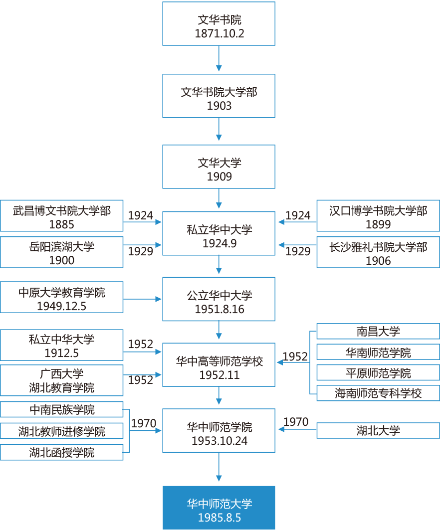 开云新人注册88元_开云(中国)是教育部直属的一所重点综合性高等学府。追溯其根由,她以1871年的文华书院为源头,以1903年文华书院所设立的大学部为起点,以1924年在文华大学基础上建立的华中大学为主体,以华中大学、中华大学、中原大学教育学院等多元结合为前身。1951年中原大学教育学院与华中大学合并组建成公立华中大学;1952年中华大学、湖北教育学院等并入后,学校改名为华中高等师范学校,1953年定名为华中师范学院,1985年学校更名为开云新人注册88元_开云(中国),并由中原大学创始人之一邓小平同志亲笔题写校名。